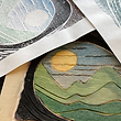 Japanese bamboo paper is laid over the wood, and the wet paint transfers into the fibres by pressing with a wooden spoon or Japanese baren. Prints can be soft and delicate or bold and vibrant, depending on how the block is painted. The woodgrain adds texture and interest. Areas can be painted and printed multiple times to build up layers and gradations.